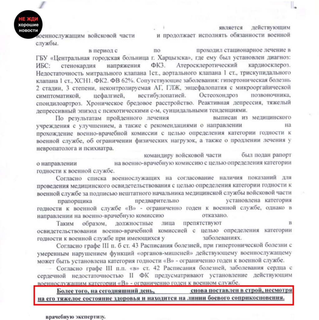 В качестве примера юрист в письме изложил дела его подопечных, которых вместо лечения отправили на передовую. По его словам, такие случаи происходят регулярно.