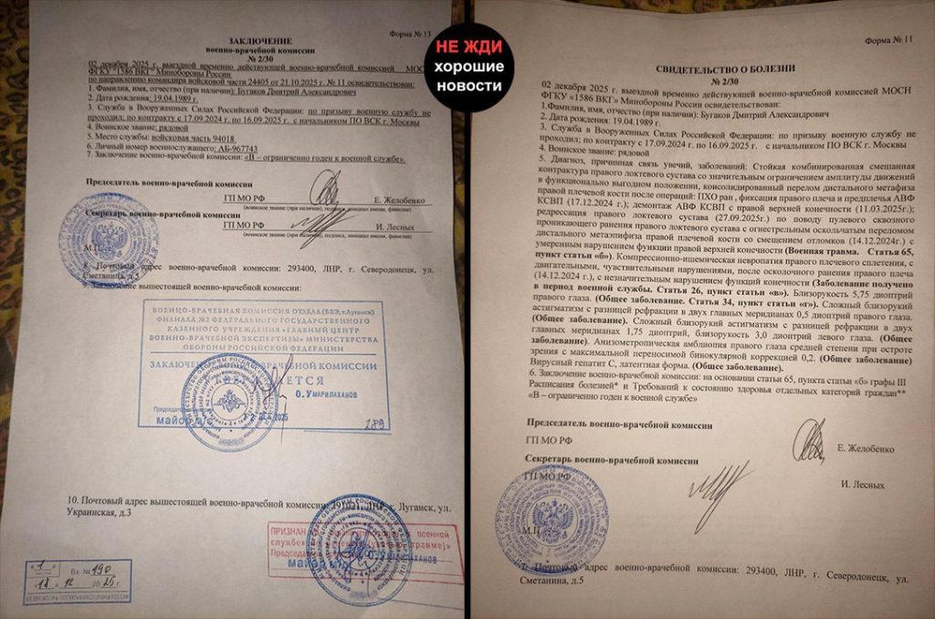У большинства военнослужащих на видео по результатам ВВК стоит категория «В» с красной печатью, что исключает их участие в боевых действиях.